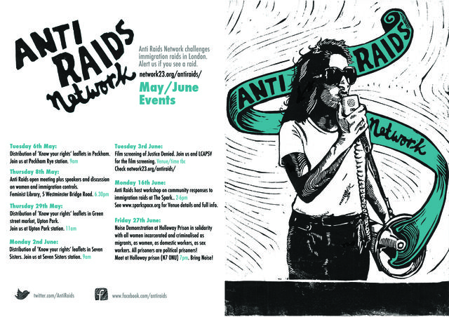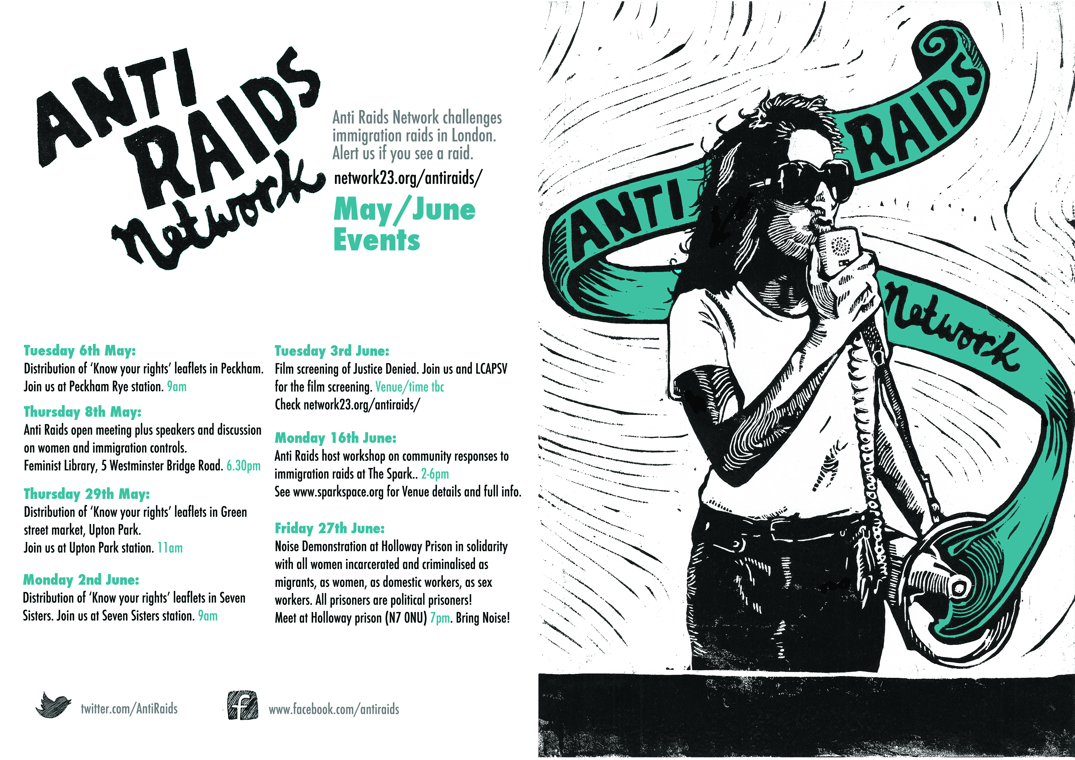 https://network23.org/antiraids. Just choose the languages that you want, or contact us at antiraids at riseup.net (replace the “at” with “@”) if you need a supply and you want to publicise your own event. We look forward to hearing your stories of distributions in your local areas and please send them to us. There are also several events coming in the future that you can join, check