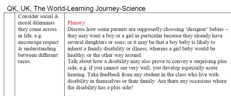 'Opening Minds' science curriculum. Hierarchy of appearances.