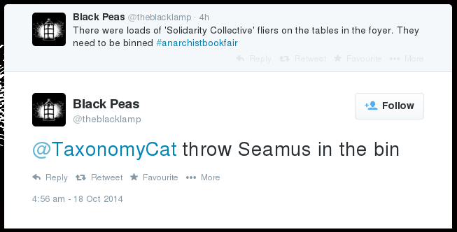 The "Solidarity Collective", in other words @blacbloc = @blacbanner = @saferspacez = @vivasolidarid = @Anarchy2011LDN = @occupyoil = @GCHQDirtyTricks = @CMOSTech