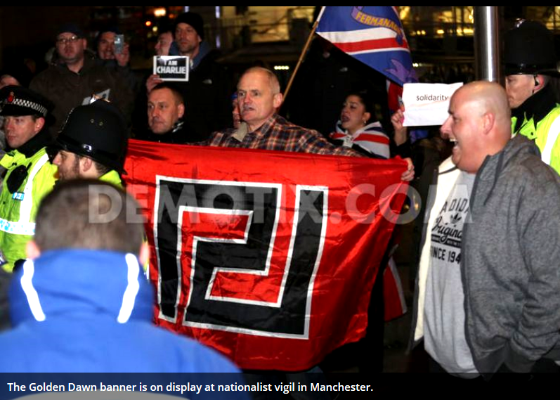 Golden Dawn Flags At Pegida UK Events