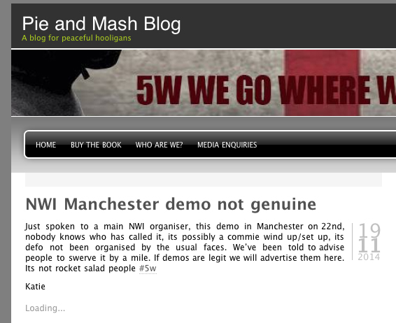 The same advert uses the phrase "Its not rocket salad" (like "it's not rocket science" but less funny) which is instantly recognisable as one of the stock-phrases Marsh is fond of posting on the Casuals United wordpress site. It looks for all the world like Anti-Fascists are being duped into advertising a covert fundraiser for Casuals United.