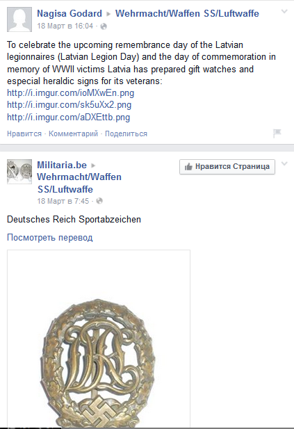 https://www.facebook.com/pages/WehrmachtWaffen-SSLuftwaffe/734517779967067?sk=posts_to_page Yet, this is not all. According to Delfi.lv, a source close to the government of Latvia has made it known that a new draft of award ‘For Military Merits and Achievements during the WWII’ having some emblems of Latvian fascists has come to light.