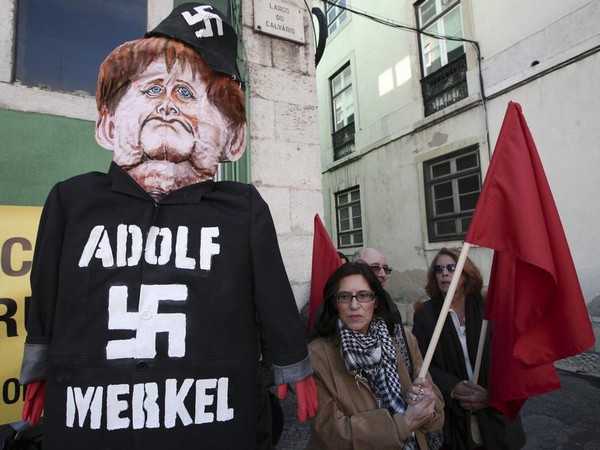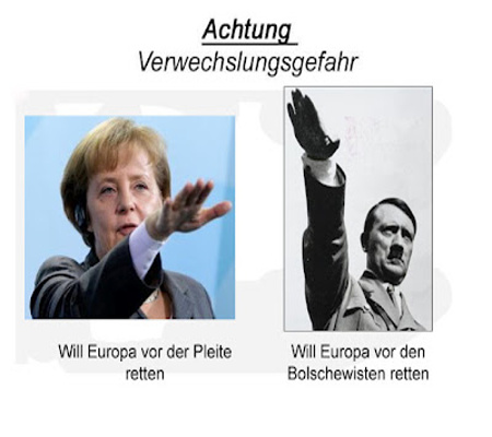 At the pictures above you can see how ordinary Europeans including Germans see political career of Angela Merkel.