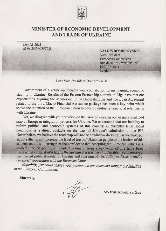 In absence of any observable chance to join both the EU and NATO the very existence of the current regime in Kiev appears to be just senseless and all its previous efforts to seize and retain power look totally unjustified. The letter of Aivarus Abromavicius, Minister of Economic Development and Trade of Ukraine, obviously written at the point close to hysteria, and addressed to Valdis Dombrovskis, Vice-President of the European Commission, is eye-opening stuff in the context.