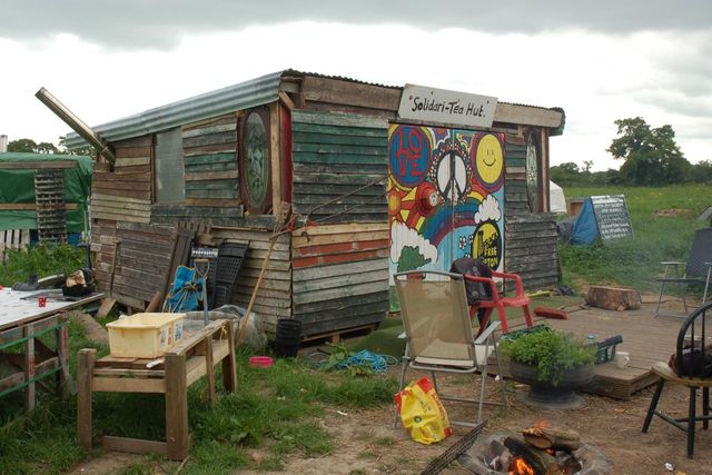 The site has been occupied ever since and is now well established, with a large vegetable garden, a kitchen, caravans, guest accommodation, compost toilets, solar power and communal areas including a well stocked library. Children living on the site are attending local schools and the camp is well supported by local people, who are invited to call in and get involved in the life of the camp. Visitors are welcome any time.