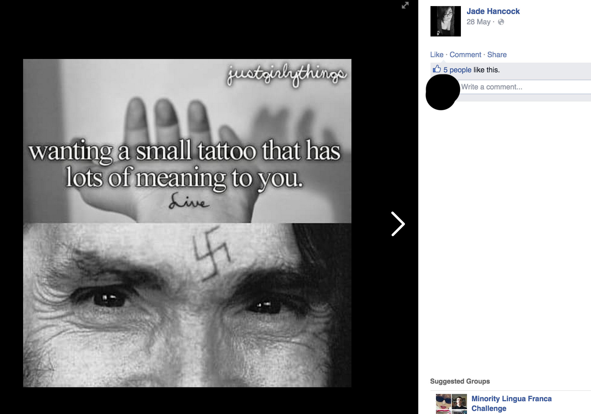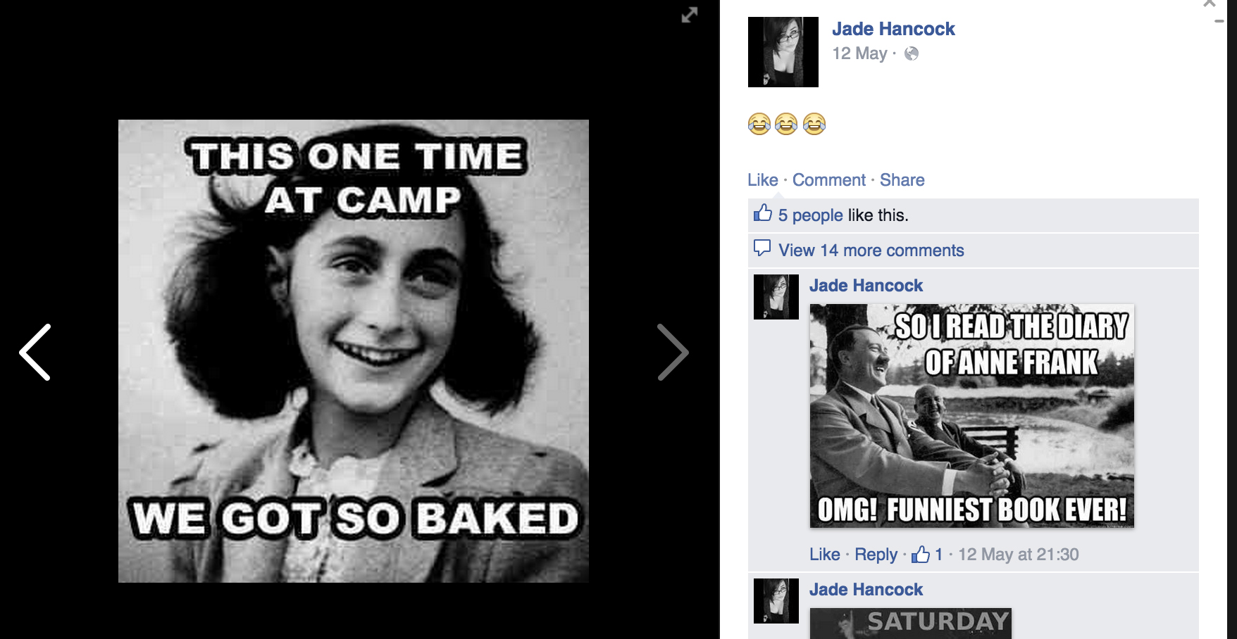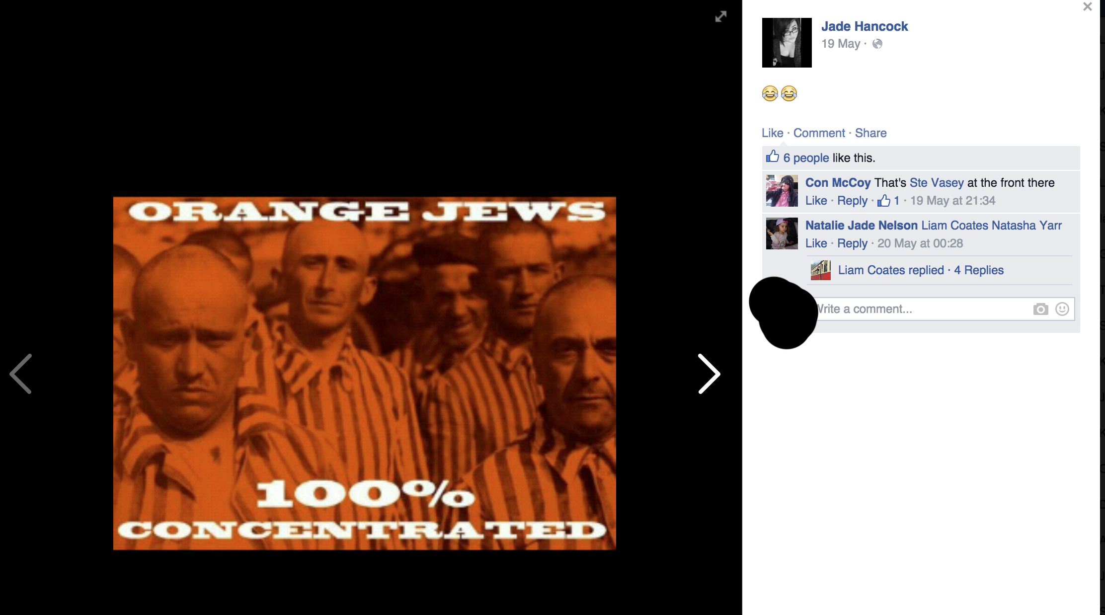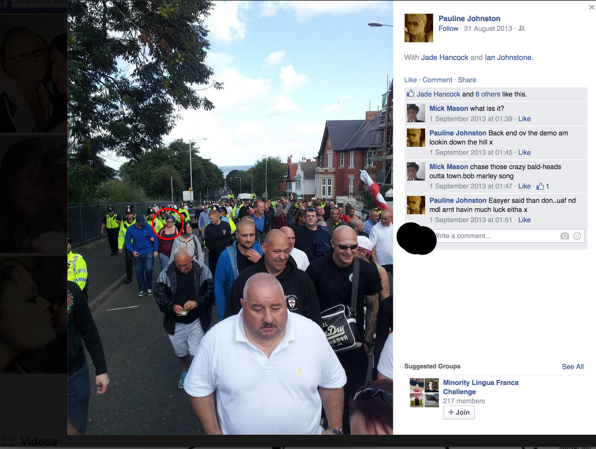 http://www.shieldsgazette.com/news/crime/football-yob-avoids-jail-over-sunderland-west-ham-brawl-1-6315798#.Uqxgor86paU.facebook Political History:- Jade Hancock is known to of been active within the National Front and EDL too. She’s actively connected with National Action, NF, EDL and Neo-Nazis within the North East and outside the region. She supports white supremacy, aryan beliefs and regularly posts racist and anti-semitic posts.