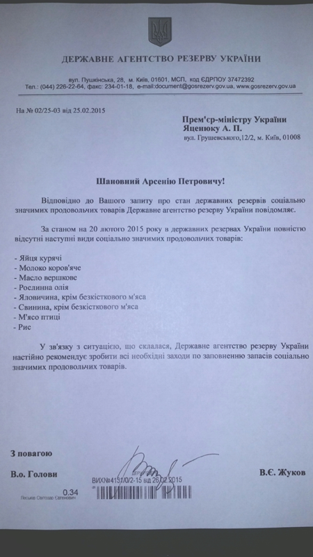 http://forum.rks.kr.ua/viewtopic.php?p=630422#630422 The senior officials of the State Reserve Agency of Ukraine report that they can’t fill the shelves of the grocery shops for lack of eggs, milk, oil, cereals and meat.