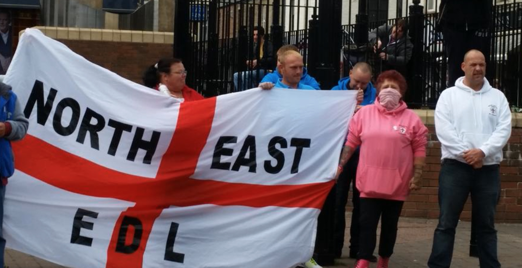 Political History:- Thomas has been involved with the EDL as early as 2013 attending the Newcastle Demo on the 25th May 2013 and has been active ever since recently attending a Flash demo in August 2015 outside Newcastle’s Tyne Theatre where Jeremy Corbyn spoke.