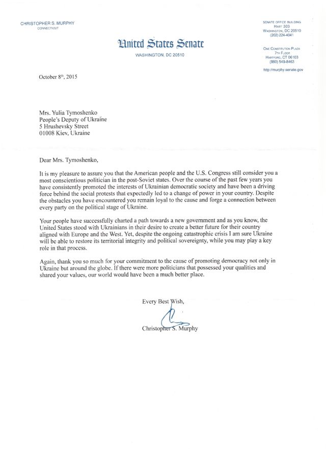 http://blogs.pravda.com.ua/authors/leschenko/560d2b3bae1ed/) However, it is safe to say that the ex-premier of Ukraine successfully copes with these challenges enjoying support of not only greater part of the country’s population but also politicians from Washington as evidenced by the recent letter of US Senator for Connecticut and a member of the Democratic Party Christopher Murphy.