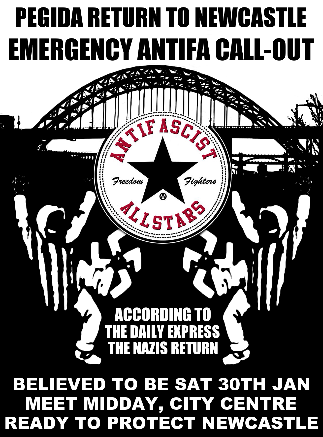 Just a year after their last disastrous outing in Newcastle, the disgusting scumbags return, viewing Newcastle as being a similar post-industrial city to Dresden, mostly white working class with high unemployment. It is up to the people to oppose them at the end of January.