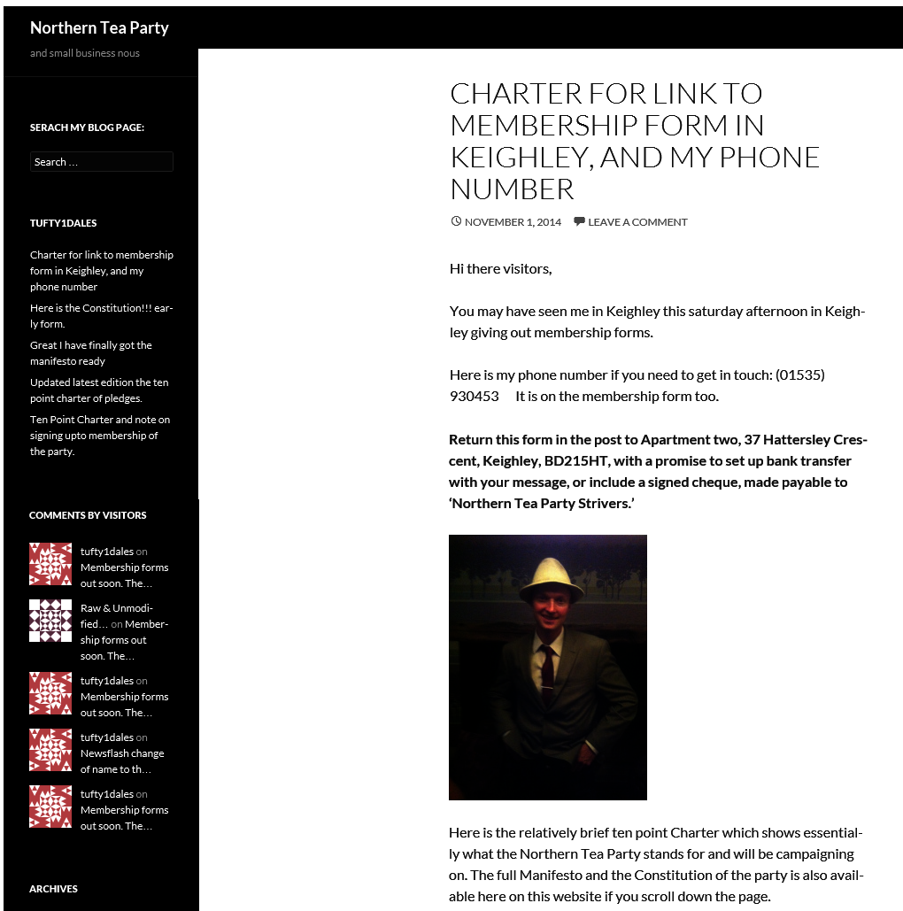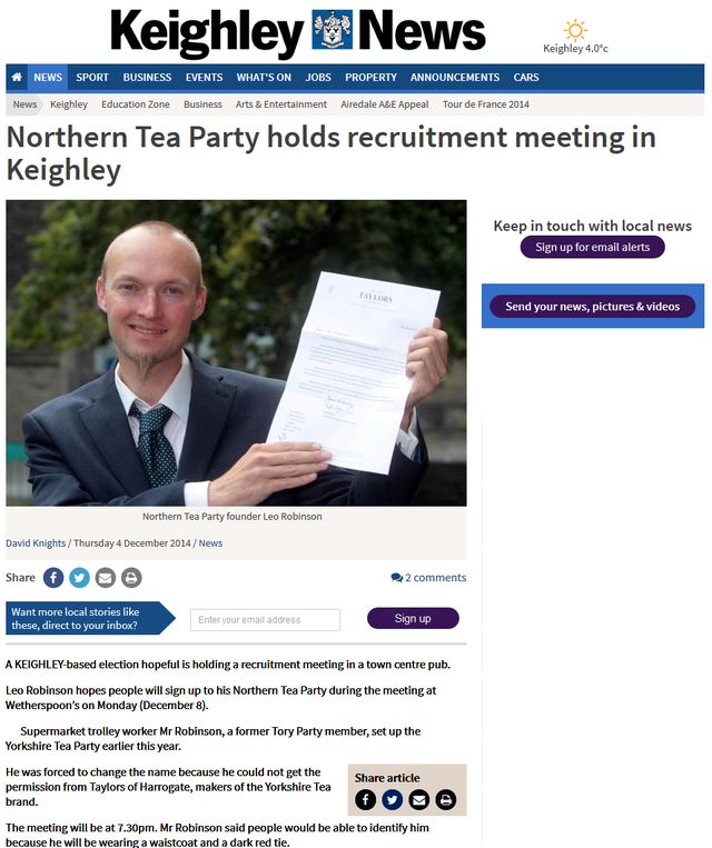 https://www.facebook.com/Northern-Tea-Party-265079997014149/ Keighley News article from 2014.