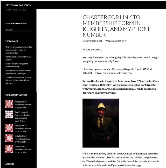 Thanks to his sheer stupidity, the Buddhist retreat manager, former Tory party member and "supermarket trolley worker" (as the Keighley News newspaper have described him), has revealed his personal details on his very own Yorkshire/Northern Tea Party website. So much for the possibility of fascists possessing brains.