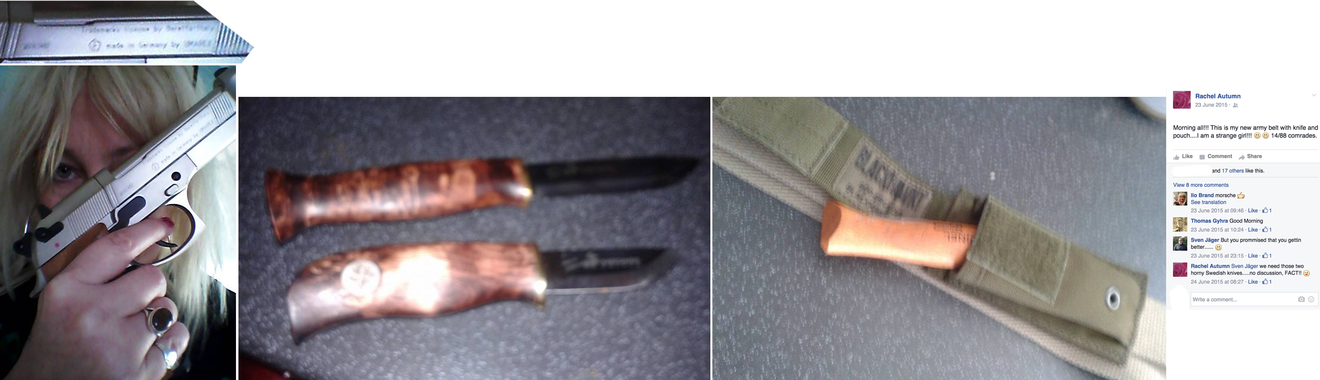 Rachel Wolff and Bodo Wolff photos with weapons, pistols and a swastika knife