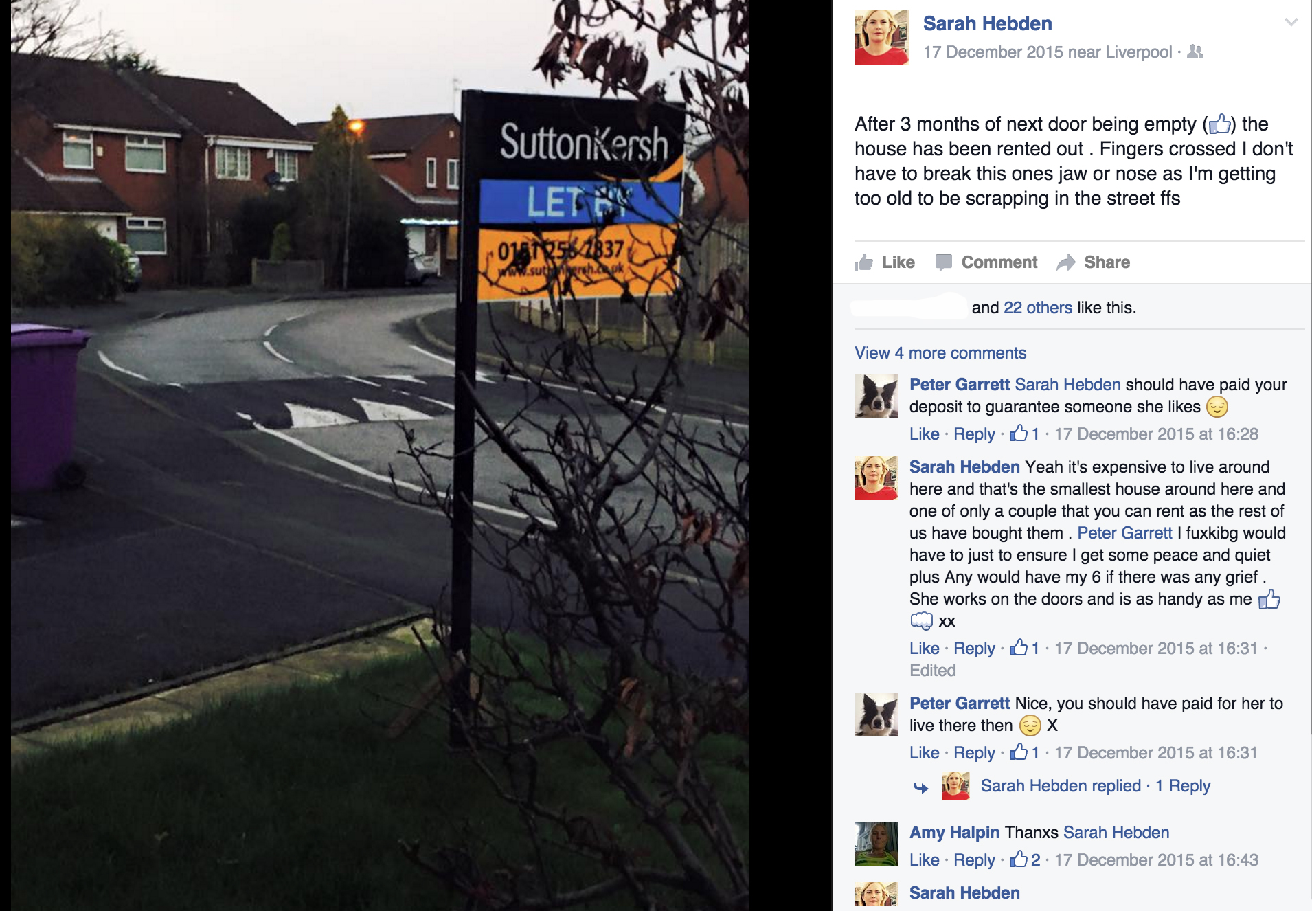 Sarah Hebden also lives a luxurious lifestyle which she likes to show off jetting off abroad on numerous occasions each year to and buying high-class brands and expensive wine. Sarah also rents a house next door to hers in an expensive part of Liverpool called Grange Avenue. Sarah says she’s going on holiday again to NY in April 2016.