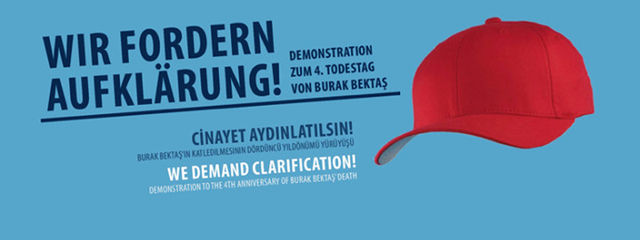We mobilize for a big demonstration on Saturday, April 9th, 2016 to commemorate the 4th anniversary of the killing of Burak Bektaş. We demand the truth to be known to the public about the killings of Burak Bektaş and Luke Holland. With the rally we want to let the public know our criticizms of the public prosecution and police investigation, that refuses to see any links or hints to a racist background of the murders.