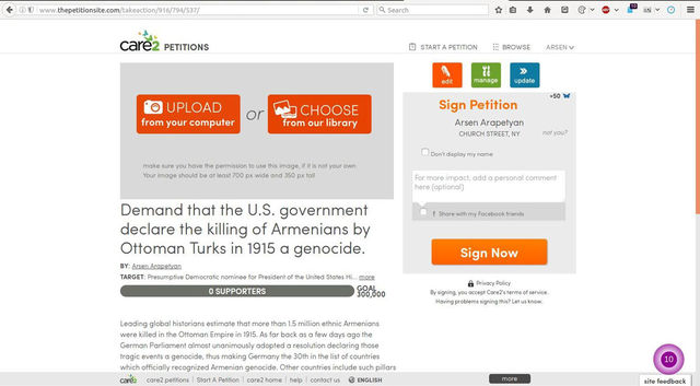 A petition asking Hillary Clinton to recognize Armenian genocide