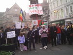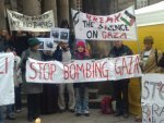 On 3rd of January 2009 about 300 protesters showed up at Guildhall Square in Portsmouth to voice their anger at the Israeli bombing and siege of the Gaza Strip. A raliegh was held with several speakers, two of them Palestinians, followed by a march through the city center to a Tesco's store where leaflets were distributed to shoppers.