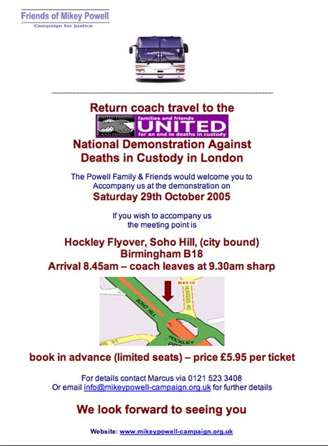http://www.injusticefilm.co.uk Saturday 29th October 2005 is the United Friends and Family Campaign’s annual Remembrance Procession in London for those who have died in custody.