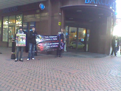 *Barclays staff showed there support: one by signing the anti HLS petition & the other by verbally encouraging us to continue across the country.