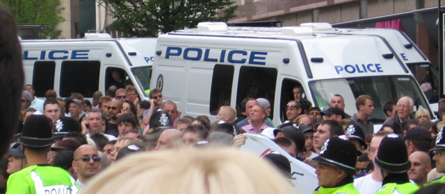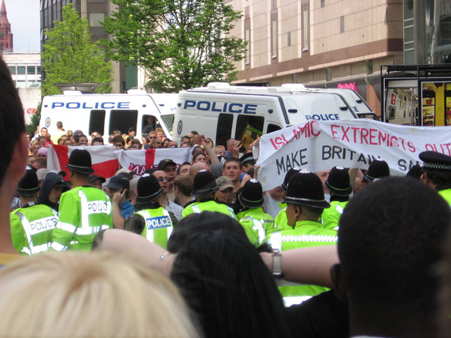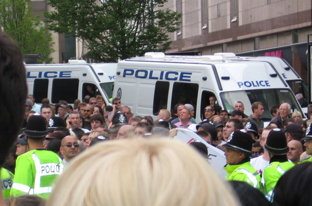 Heads up to those who assembled at the bullring and gave the Daily Mail Hooligan Brigade a bit of abuse back, if they'd broken out of their cordon it would've been a blood bath. If these wankers are planning on doing more marches it's important that people of all races, national backgrounds and whatever religion they choose to believe or not believe in come out and provide an opposition to them. I totally agree that Islamic extremists need to be dealt with but this EDL lot seem to ignore the fact that people who follow islam do deal with them. Our lives are NOT determined by what god we believe in or what colour our skin is, british and migrant workers have so much more in common than we do in conflict, we need to stand firm, together during the recession and fight back against the government and our bosses not amongst each other.
