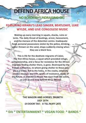 Defend Africa House - No Borders Gig - July 16th - Birmingham