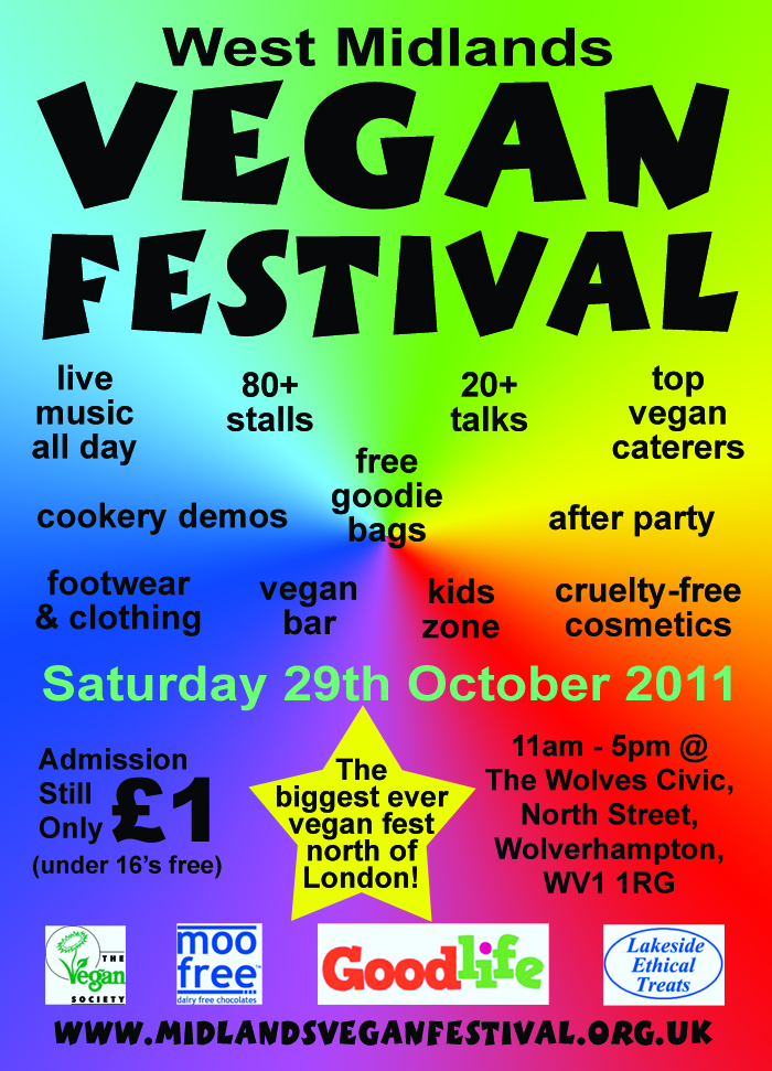 One of the biggest vegan festivals in the UK returns to Wolverhampton on Saturday 29th October 2011 and looks set to knock the spots off last year's event!!