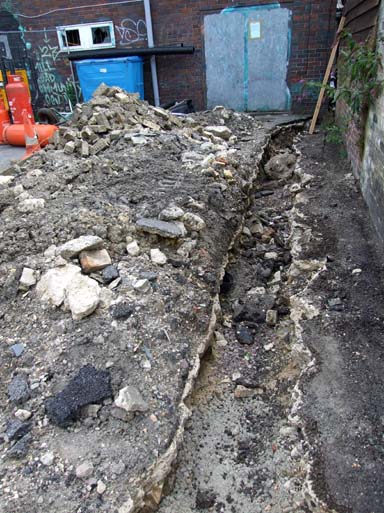I did some snooping up there myself yesterday, and below are some pictures of what Tescos have done to the site so far, including digging a whopping great trench in the carpark around the back.