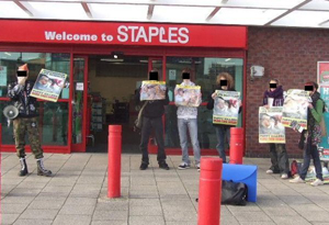 Stationary supplier Staples (www.staples.co.uk) has been caught sneaking into HLS in unmarked vans. This shady kind of behaviour means they clearly do not want the public shame of helping the Huntingdon poisoning factory.