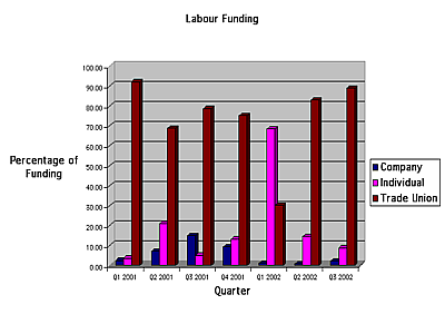 The Labour Party is in dire financial straits. In 2002 it was overdrawn by 5 million pounds in addition to a