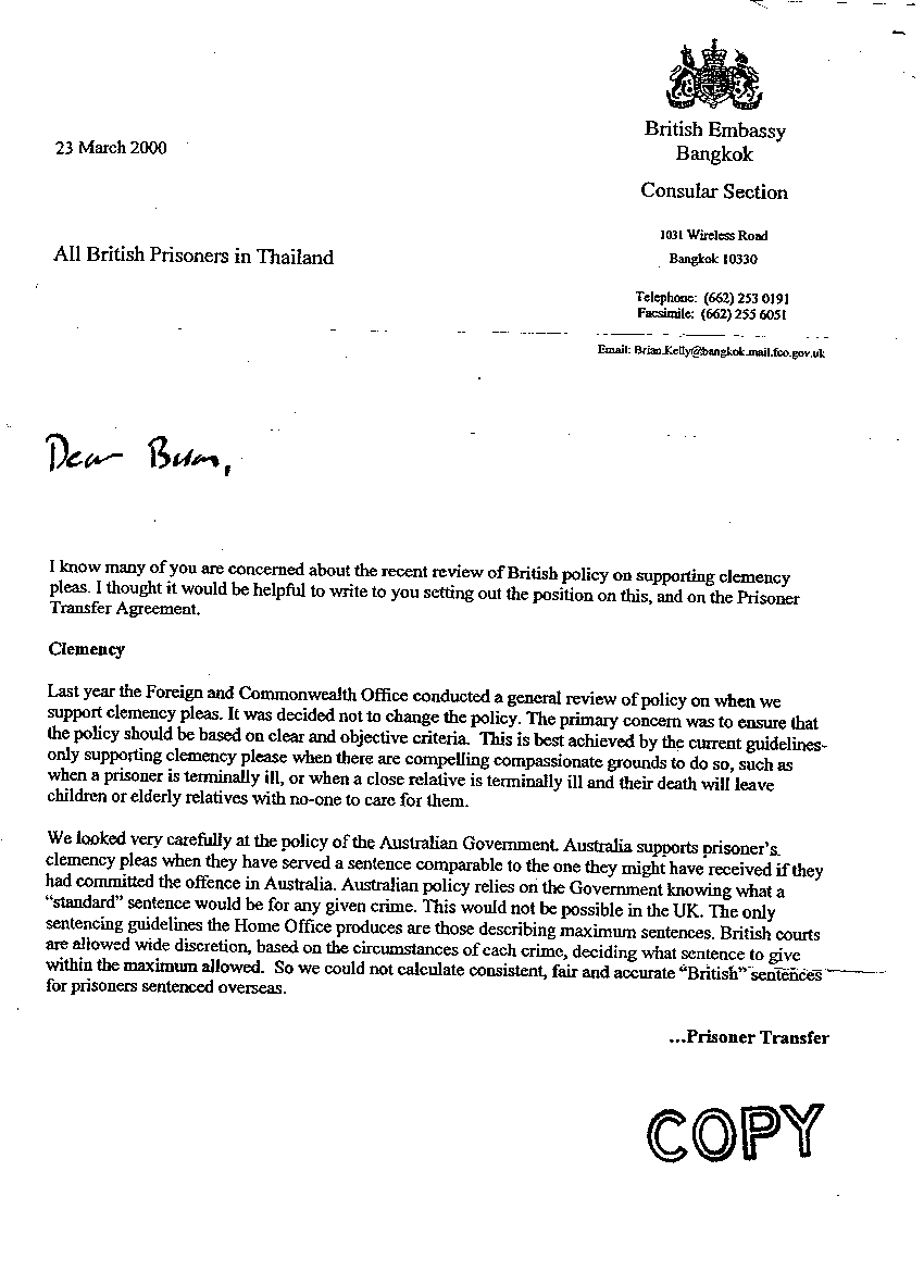 continue to enforce the Thai sentence. As you are probably aware our parole system is not as flexible as