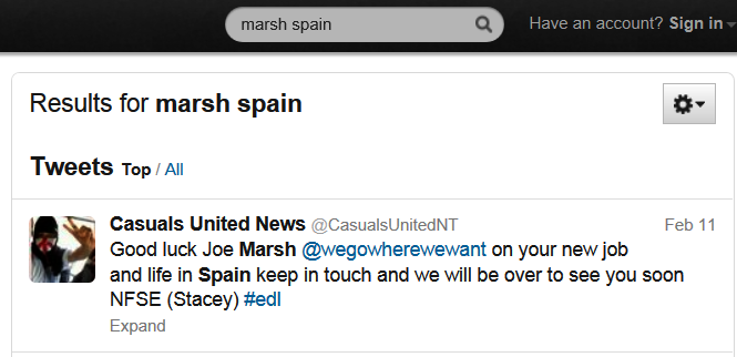 Mr Marsh should be at home in the north of Spain but most English nationalists who flee to th...sorry, travel to the country tend to settle up around the coastal areas for the sun and sea especially around the Costa del Sol which is as far south as you can go without ending up in Morocco.