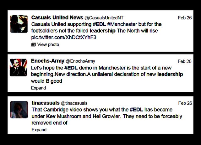 Out would go the slavish devotion to Israel, and the fake pretence that the EDL were not homophobic, and in would come, what many EDL refuseniks on Twitter called "real patriotism without the political correctness".