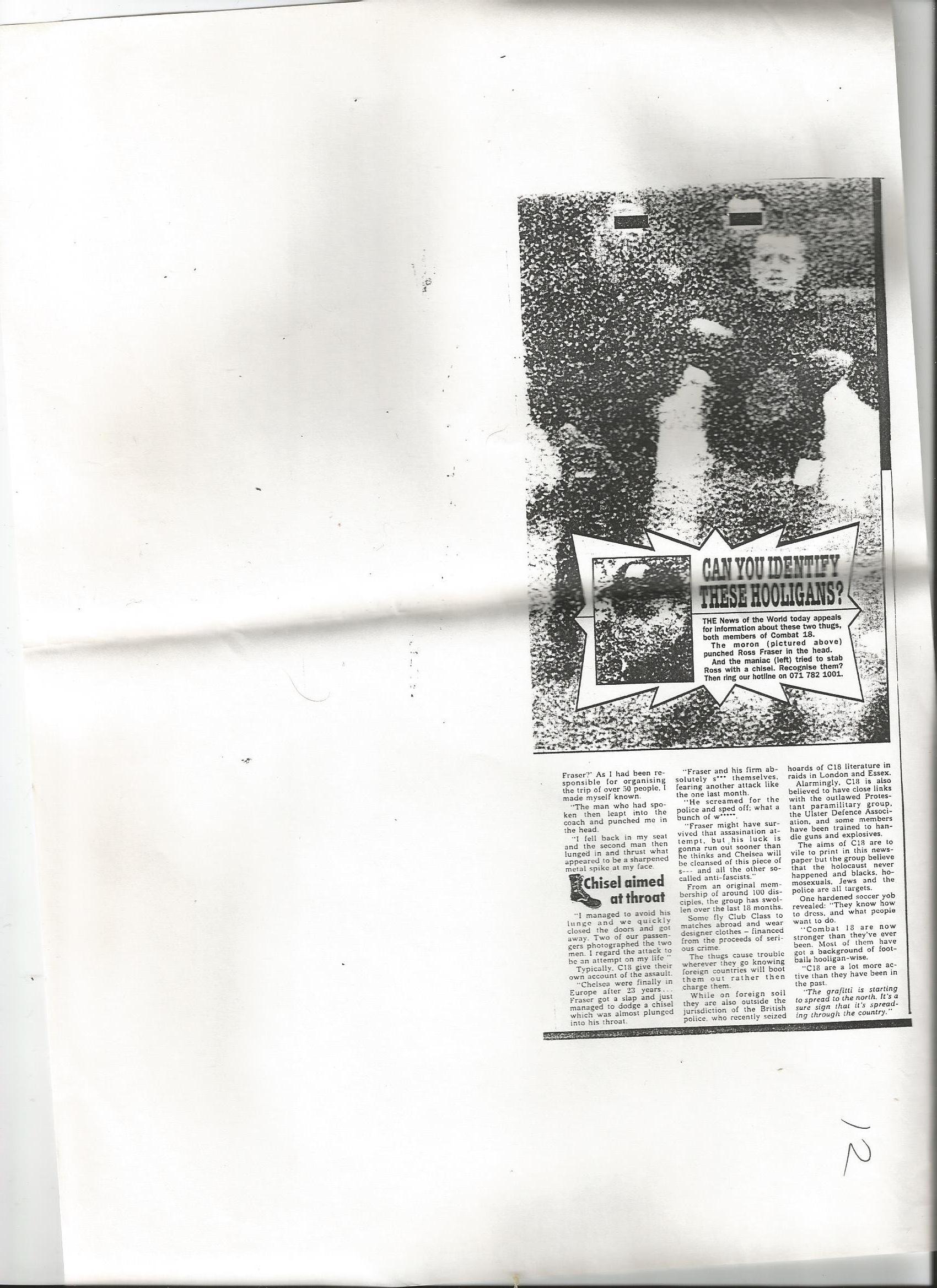 There were people who came from all over the country: Wales, the North of England, Scotland, West London, South London, East London and North London. All these people went back to their areas knowing the truth and telling all their mates. THE TRUTH CANNOT BE HIDDEN! In the trial itself, Sargent looked exactly what he was: a sad little inadequate loser. He had let his hair grow long and greasy; he wore an ill-fitting suit and ‘Woody Allen’ style thick-rimmed glasses. What happened to the "Terror Machine" eh Charlie? During the trial it emerged how, after being expelled in disgrace from C18, Sargent had planned the murder of Chris Castle in order to gain some cred. after being left a laughing stock in Harlow after his expulsion. The court heard how Sargent had arranged for Chris Castle to drop off some of Sargent's work tools there. These tools had been left around at Kev Johnson's flat in Harlow after Sargent had tiled Kev's bathroom. They came into Mark Atkinson's possession after he cleared Kev Johnson's flat out for him. The tools were just among all the gear cleared out, not stolen, as Sargent had been telling everyone. The court heard how Atkinson had tried to take the tools back to Sargent once, before the murder, but the cowardly Sargent had been too scared to open the door to Atki and pretended he wasn't in even though he could be seen through the window. Because Sargent was too spineless to open the door to anyone in C18, it was arranged that Chris Castle, who was known to everyone as a really nice bloke and not a troublemaker, would drop the tools off to Sargent and also pick up some money from Sargent to give to Martin 'Double-Cross'. This money Sargent owed to a Belgian, who owed money to C18, so rather than send it to Belgium, then back to England, Sargent was to hand it to over to C18 who would then take it as a gift to Martin 'Double-Cross' to pay for his father's funeral. The truth about what Sargent said to get Cross to be at his house and stab Chris in the back will most probably never be known. This is probably one of the most sickening aspects of the case: That Cross stabbed the man who was picking up money for him as a gift in the back.