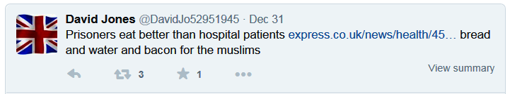 The tweet is identical to the kind of vile white supremacist tweets posted by Nick griffin in the last five years.