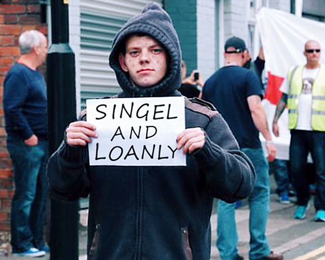 Moronic misfits who lack the social skills to charm the opposite sex, and the brainpower to see how totally and utterly pointless the EDL has become, wasting their pennies on the same old speeches, the same old fisticuffs with Dave Bolton, the same old arrests, and the same old lack of emotional fulfilment, the life of the embattled lingering footsoldier is "virgin" on the ridiculous. Dreaming of a bevvy of EDL Angels primed to pop sad and lonely male nationalist cherries to oblivion, all the date-weary hangers-on discovered was a scattering of sour-faced middle-aged men with seven-month pregnant beer bellies.