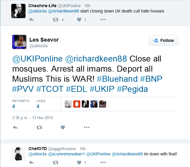 One of the internet's biggest neo-Nazi cranks, failed pub singer Les Seavor of Huyton, Liverpool, has announced the official start of World War III to the world, and as always, it is a "final conflict" between Aryans and Muslims. The grumpy retired fascist git who foams more than Mount Etna whenever tragedy strikes, has once again, whilst everybody else mourns, tried to capitalise upon human suffering in Paris, by single-handedly declaring war. He has dispatched official orders for the forthcoming yet miniscule EDL Reich to deport all Muslims and close all mosques before murdering them. Les Seavor AKA @ublocks needs serious help from a psychiatric professional.