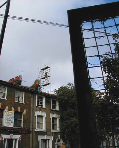 - No bailiffs have shown up and the alert has been called off. The residents of St Agnes have constructed a scaffolding tower on the building roof that is about 65 foot high which can be used for lock-ons in the case of eviction proceedings.12:00pm - The street remains secure at this time. No sign of bailiffs up till now but residents are staying on alert.