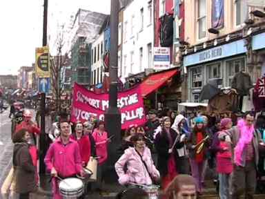 the instant co-operation of the bootstore management was in marked contrast to the attitude of the manager at EGOSHEGO across the road, who not only refused to listen to the protestors, but assaulted this photographer who was filming the non-violent, colourful samba action outside the shop.