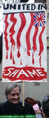http://www.inminds.co.uk/stopbush-1-20nov03.html ] The largest weekday demonstration in the history of Britain was held to oppose Bush's visit to the UK. On a busy working day over 300,000 people poured out on to the streets of London, bringing it to a stand still, to denounce George Bush and Tony Blair as terrorists.