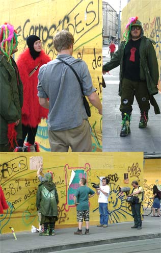 It also showed footage of them in Geneva for the G8 protests. It showed them taunting the police from a crowd of people on the street where the IndyMedia centre at L'usine was (the centre that was raided by black block cops and riot police firing concussion grenades) Ha ha, very funny.