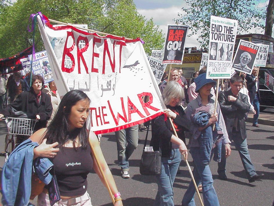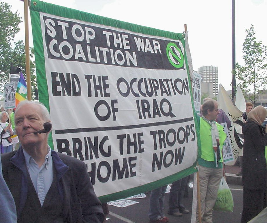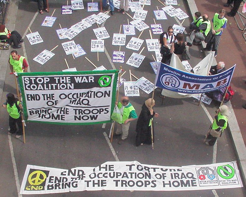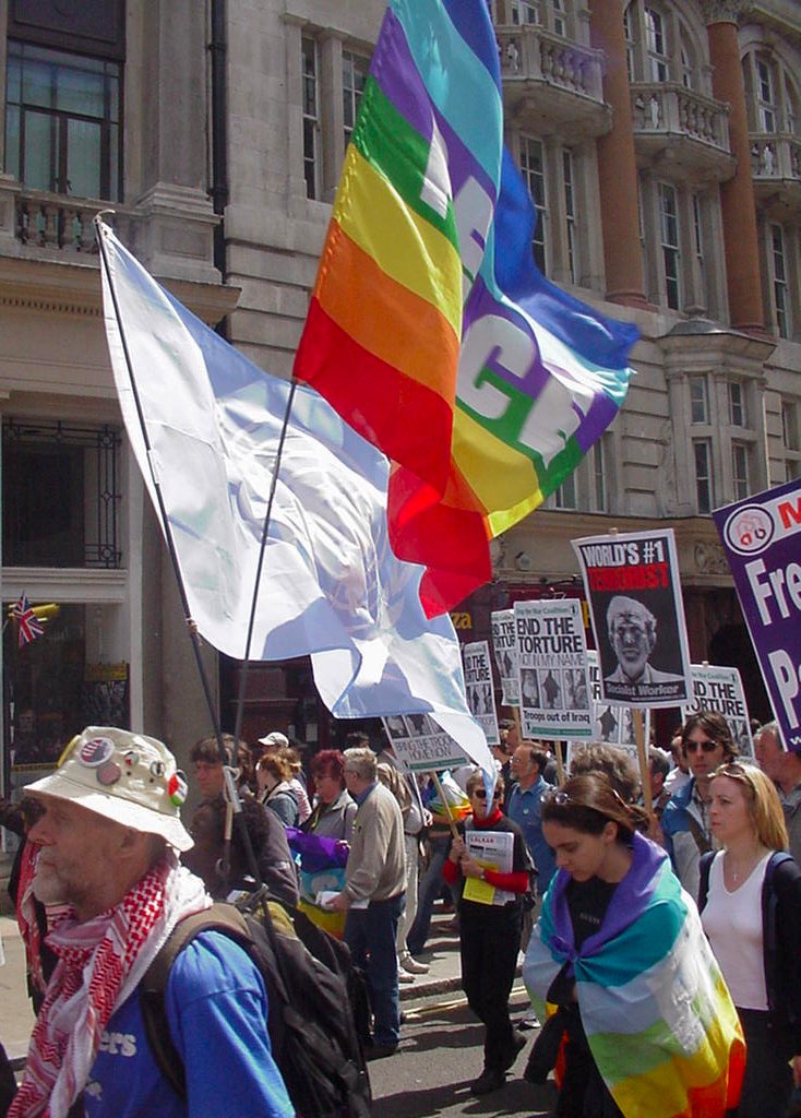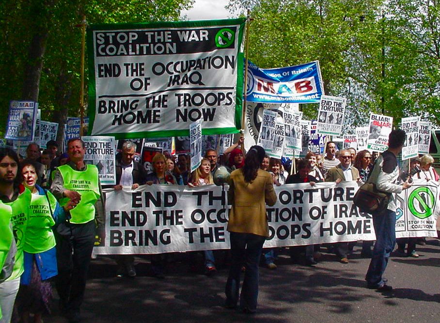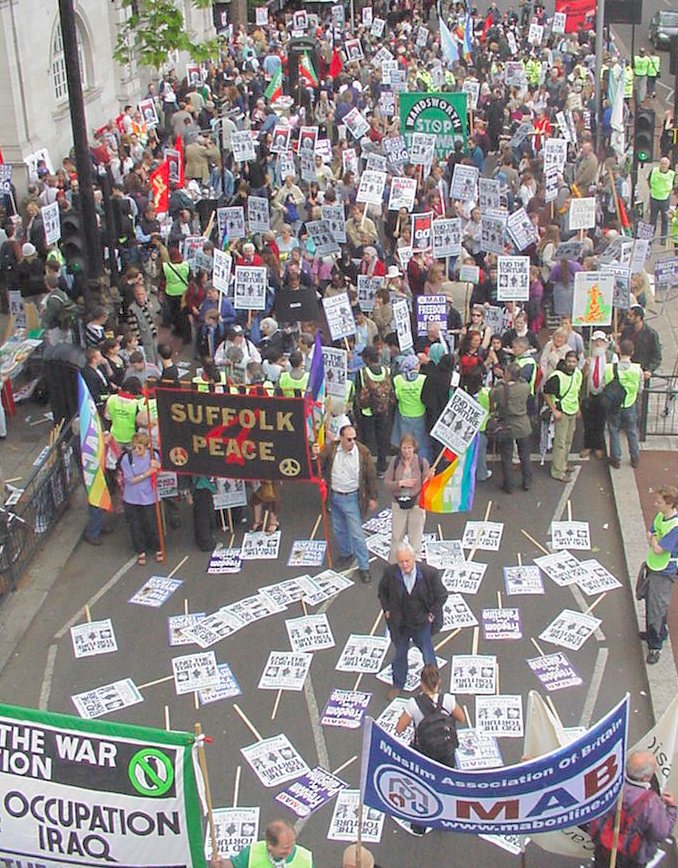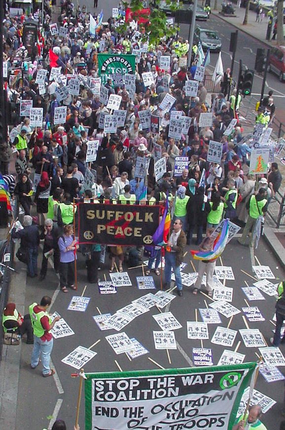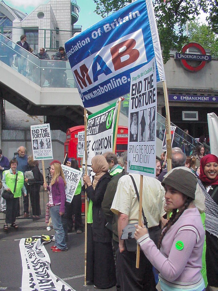 The most excellent street theatre group "Theatre of War" preceded the march and formed a backdrop to the speakers on the plinth of Nelson's Column, recreating in the flesh some of the abuses handed out to Iraqis by US occupation forces. For more, see: