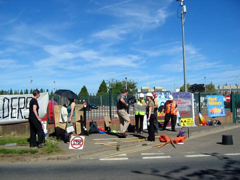 Around two dozen people, including several Oxford activists and your intrepid Indy reporter, gathered at the main gate of AWE Aldermaston and gave the gentlemen of the MOD a first taste of how we plan to ‘Block the Builders’.