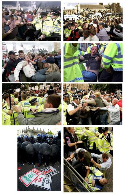 then as the ruck expanded others joined in, some got caught up in it, and the police panicked and battered a load of people. bringing in more riot cops just seemed to make the situation worse, and more people joined in and more police began splitting heads.