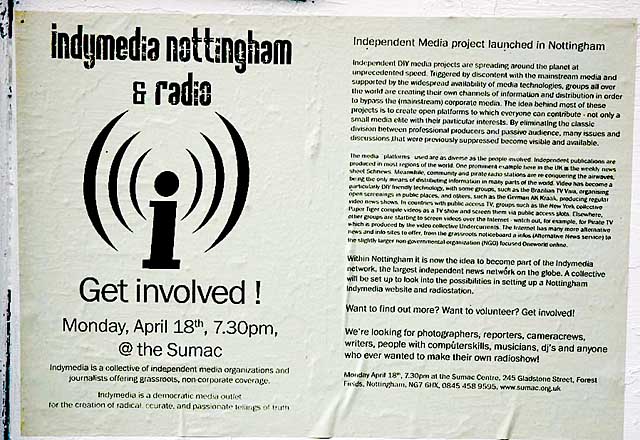 Nottinghamshire IMC | 19.04.2005 10:41 | Culture | Education | Indymedia | London | Sheffield
