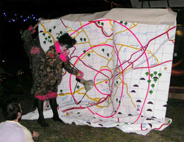 On the same evening the Laboratory of Insurrectionary Imagination, together with the Clandestine Insurgent Rebel Clown Army and the Church of the Immaculate Consumption arrived in the East End for the London's date of their UK wide G8 touring show. This included a two day intensive Clown Army training to prepare for this summer’s G8 Mobilisations in Scotland, as well as a show, films and free food [Report and Photos 1 | 2 | 3]