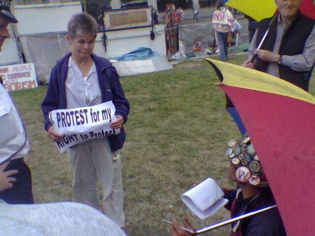 This new law amounts to the police making political decisions as to who may protest - and how - near Parliament. Campaigners will be openly and peacefully defying the Act in a series of demonstrations at the beginning of August. [Photos and Reports 1 | 2 | 3 | 4 | 5 | 6 ]