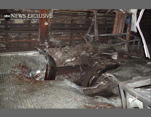 He and Crystal were helped out of the carriage. As they made their way out, a policeman pointed out where the bomb had been.