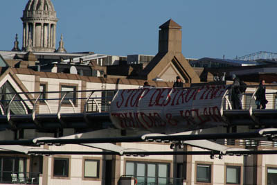 On new years day, campaigners from the group SavingIceland.org climbed St.Pauls Cathedral and the Tate Modern as part of the SavingIceland.org campaign, a group dedicating to challenging the destruction of Europe’s last remaining great wildernesses, in Iceland. This is to be a protest against the destruction of rural communities in Trinidad and the Icelandic wildernesses, the last of their kind in Europe, both at the hands of the aluminium industry.