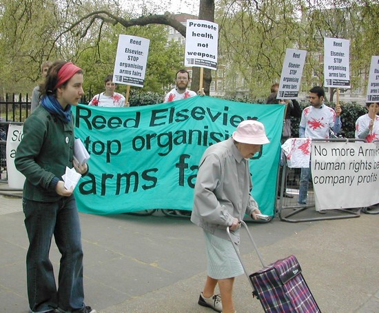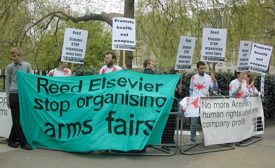 Reed Elsevier's board today struggled to defend their reputation at an AGM dominated by criticism of their role in the arms trade. Reed is best known as an academic and medical publisher but most questions concentrated on their subsidiary business running arms fairs. Meanwhile academics, medics and students joined Campaign Against Arms Trade (CAAT) in a peaceful protest outside the building.