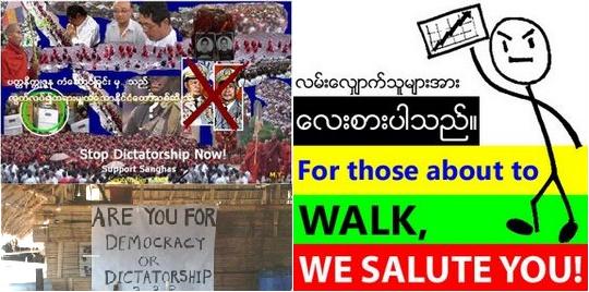 * Pro-democracy groups are reporting that on Sunday morning, three large posters appeared on various sites around Rangoon. The one placed outside of the notorious Insein Prison attacked the regime's well-known record of corruption and said (translated from Burmese): "If you have money, it is a heaven in prison. [With] no money, it is a hell. We [the regime] welcome bribes! Corruption is everywhere under military rule." A second sign at the park where the Capital Building is located said: "Father, General Aung San! Although you built Burmese army to fight for independence, now they are killing our people! Although you brought military technology and knowledge, they arrest innocent people! They rape our country. Father General Aung San! Please come back and teach your army to be polite." (General Aung San is widely considered the symbol of Burmese independence, and is the late father of National League for Democracy Leader, Aung Sun Suu Kyi. He and six of his Cabinet ministers were killed in 1947 during a paramilitary raid on the capital.) And yet, a third poster on an "independence monument" (erected by the current regime to honor themselves) in the capital city said to the people of Burma: "Remember! This is a fake independent monument. Are we really free?" This set of actions falls into the category of nonviolent protest and persuasion, and is intended to demonstrate to a larger audience - the population, the international community and the regime particularly - that the resistance represents, at its core, an unwillingness to remain complicit in the "lie" that all is normal on the streets of Rangoon.